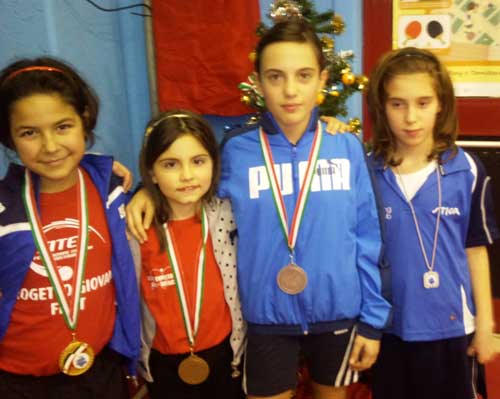 le due atlete della A.S.D. T.T. Silvi, Giulia Ciferni e Lucrezia Assogna, accompagnate dai Tecnici Federali, Federico Pace, responabile tecnico regionale, e Cristian Campagnari.